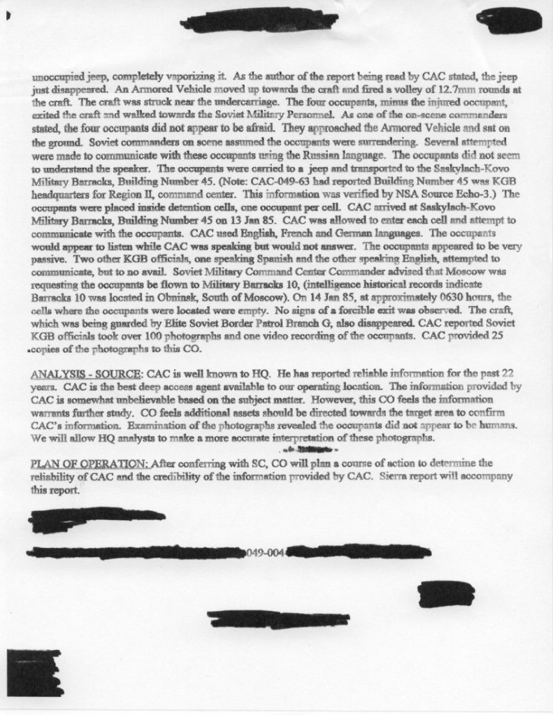 Back in January 1985 a secret US spy operation discovered how two UFOs and their alien occupants were shot at by Russian special military forces in a confrontation northwest of the Ceremchova ICBM site 62 (Saskylach-Kovo).