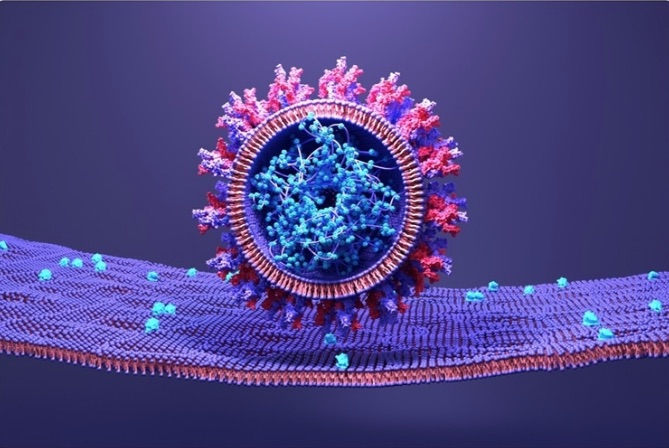 To gain entry into your cells, the virus must first bind to an ACE2 or CD147 receptor on the cell. Next, the S2 spike protein subunit must be proteolytically cleaved (cut).
