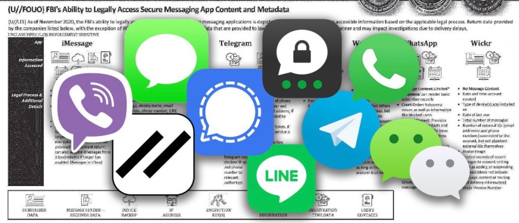 The messaging apps that the FBI can access include – Facebook Messenger, iMessage, Signal, Telegram, Threema, Viber, WeChat, WhatsApp, and Wickr. These apps are now providing the FBI with detailed logs of ALL the latent data made in each call or communication.