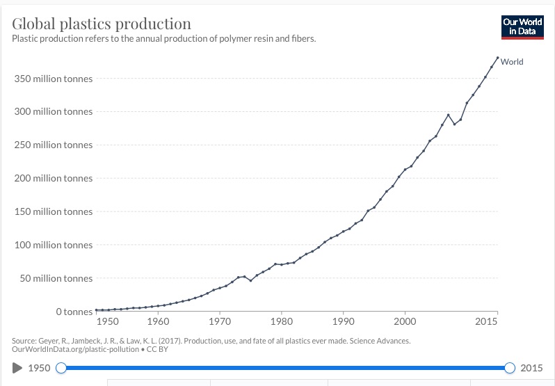 “Mass production of plastics, which began just six decades ago, has accelerated so rapidly that it has created 8.3 billion metric tons – most of it in disposable products that end up as trash. If that seems like an incomprehensible quantity, it is.