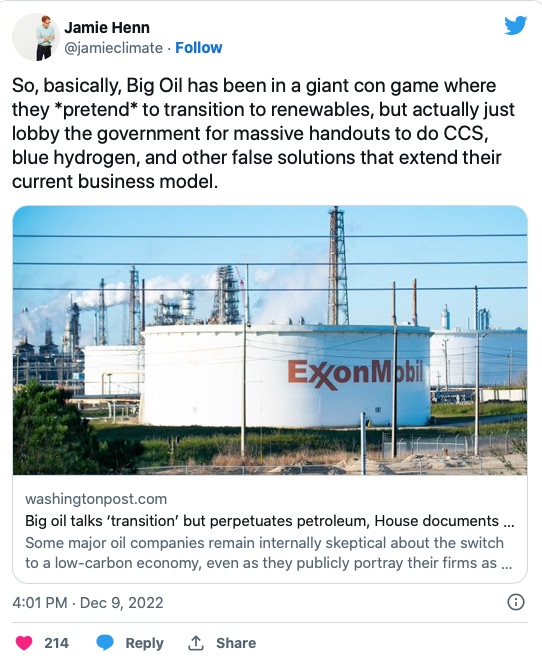It should be noted that board members from the four Big Oil companies refused to testify before Congress about their so-called net-zero plans.